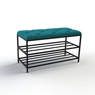 Банкетка з каретною стяжкою та чорним каркасом 80 см Бірюзовий