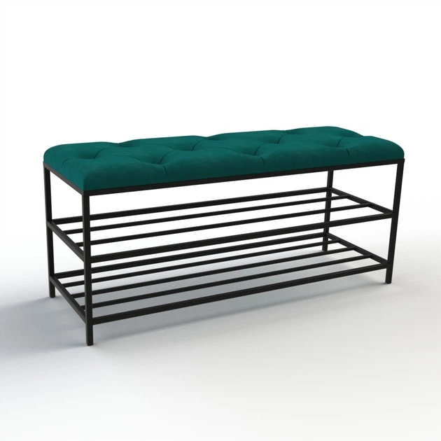 Банкетка з каретною стяжкою та чорним каркасом 90 см Бірюзовий