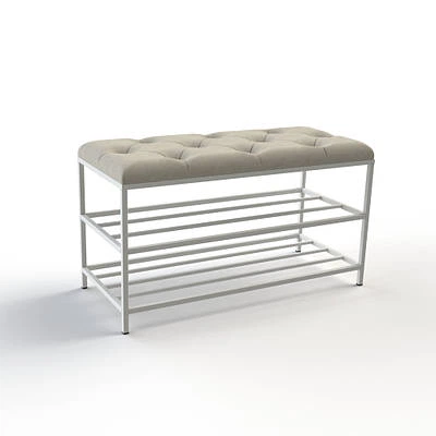 Банкетка з каретною стяжкою та білим каркасом 80 см Бежевий