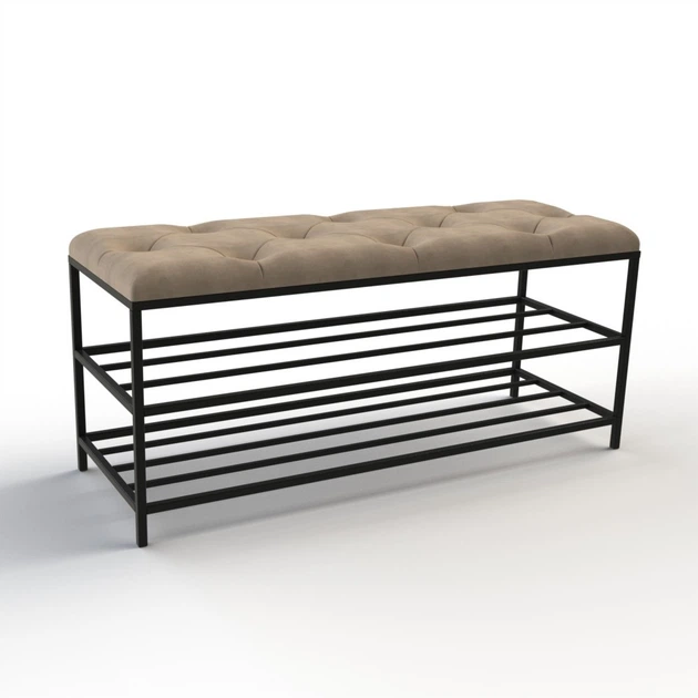 Банкетка з каретною стяжкою Mzavod 100 см, Чорний каркас, Бежева тканина