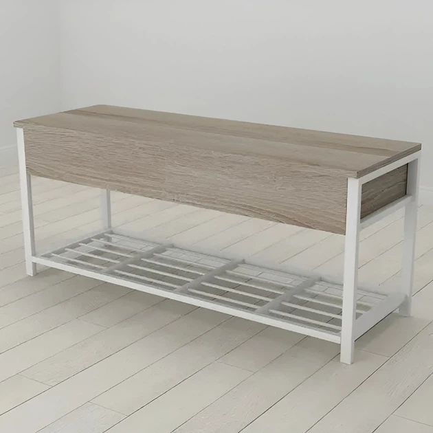 Банкетка із ящиком Ferrum-decor Дрейк 1 550x1000x400 метал Білий ДСП Сонома 16 мм (FRD-103055)