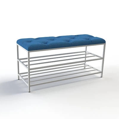 Банкетка з каретною стяжкою та білим каркасом 90 см Синій