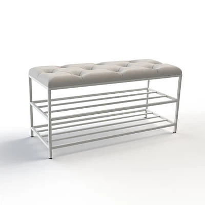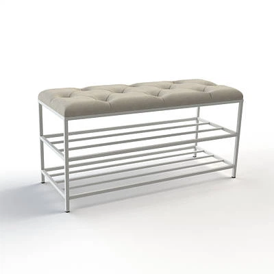 Банкетка з каретною стяжкою та білим каркасом 90 см Бежевий