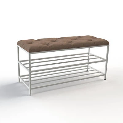 Банкетка з каретною стяжкою та білим каркасом 90 см Коричневий