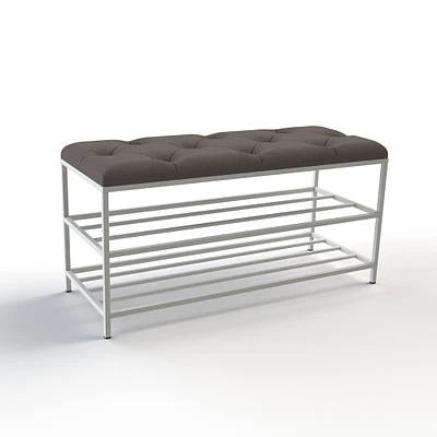 Банкетка з каретною стяжкою та білим каркасом 90 см Сіро-коричневий