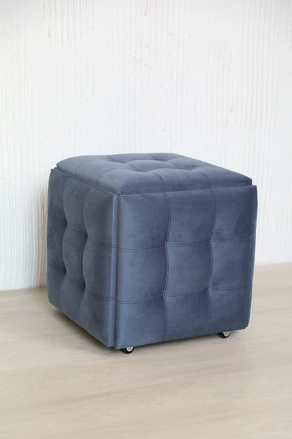 Пуф 5 в 1 трансформер прошитий з велюром синій колір, розкладний табурет з велюра преміум якості 5 в 1 синього кольору СТУ-2