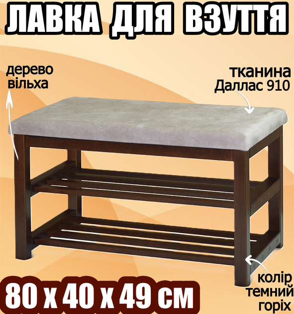 Крамниця для взуття 80х40х49 см підставка для взуття Банкетка 2 поліці каркас із дерева вільхи, пуф меблі в прихожий Темний