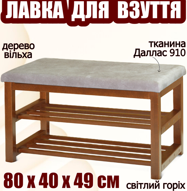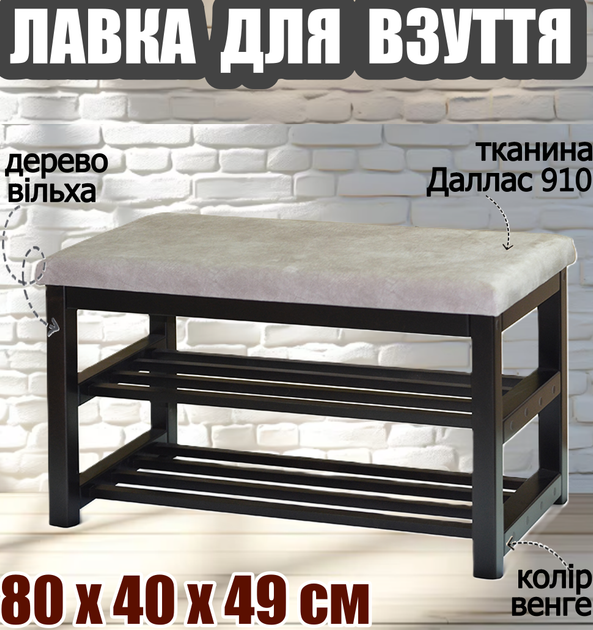Банкетка підставка для взуття 80х40х49 см м'яка лавка для взуття з поліцями каркас із дерева вільхи, пуф меблі в прихожій Ве