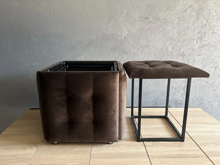 Пуфік розкладний трансформер 5 в 1 на колесах 50*50*50 см з велюру від виробника коричневий PUF-19