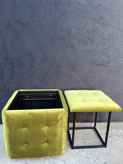 Пуф 5в1 трансформер прошитий з велюром колір світло-зелений, розкладний табурет 5в1 світло-зеленого кольору PUF-33
