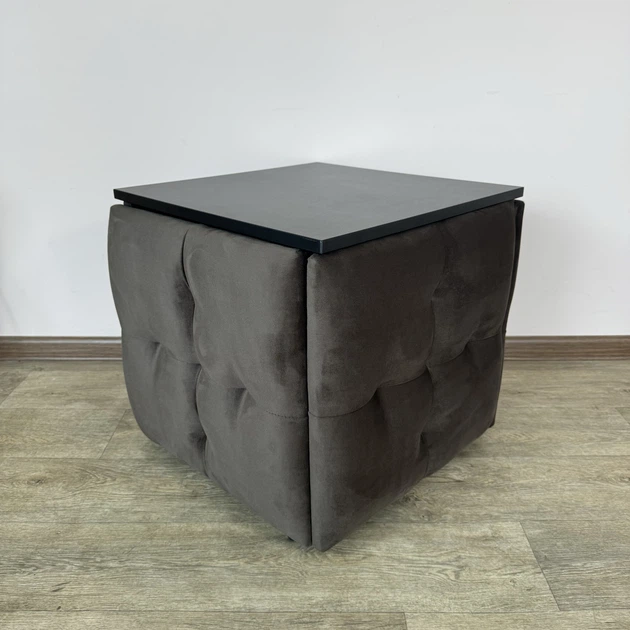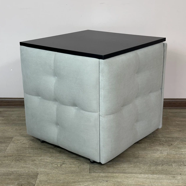 Пуф-трансформер 5 в 1 Mzavod Остін-4 зі столиком велюр світло-сірий/чорний (OSTIN-4-ST-VLR6-5-9005)
