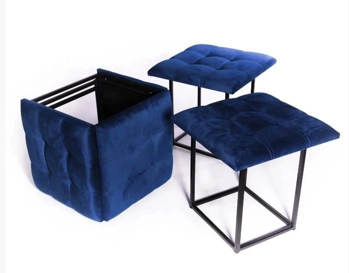 Пуф-трансформер 5 в 1 Mzavod Остін-4 зі столиком велюр синій/ріголетто темний (OSTIN-4-ST-VLR9-1-9003)