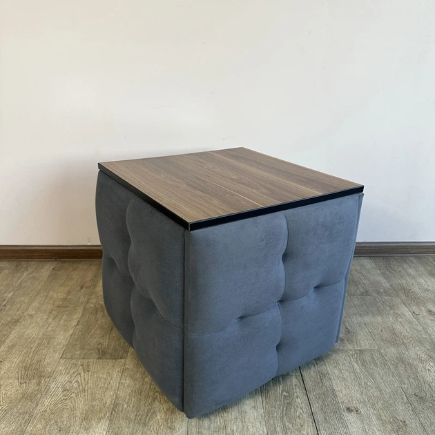 Пуф-трансформер 5 в 1 Mzavod Остін-4 зі столиком велюр сірий/горіх каліфорнійський (OSTIN-4-ST-VLR7-4-9003)