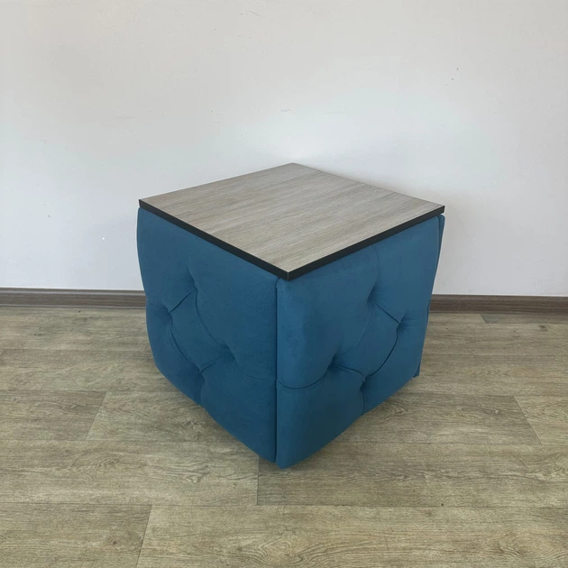 Пуф-трансформер 5 в 1 Mzavod Остін-1 зі столиком велюр бірюзовий/біла аляска (OSTIN-1-ST-VLR2-3-9005)