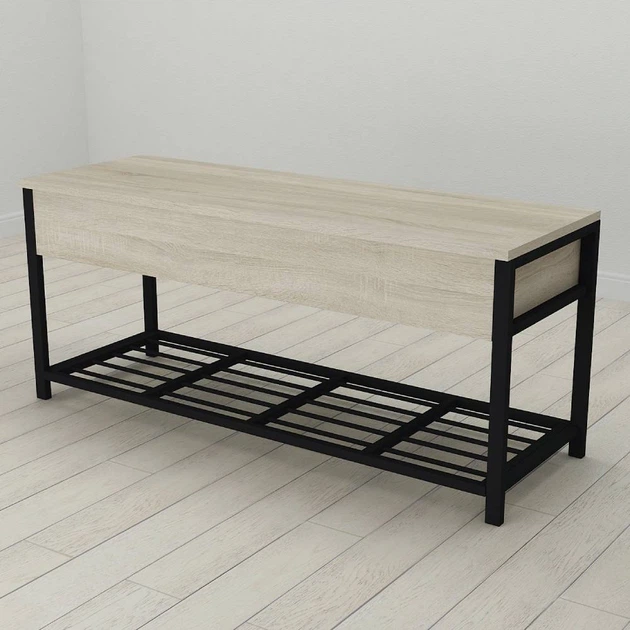 Банкетка з ящиком Ferrum-decor Дрейк 1 550x1000x400 метал Чорний ДСП Сонома 16 мм (FRD-103048)