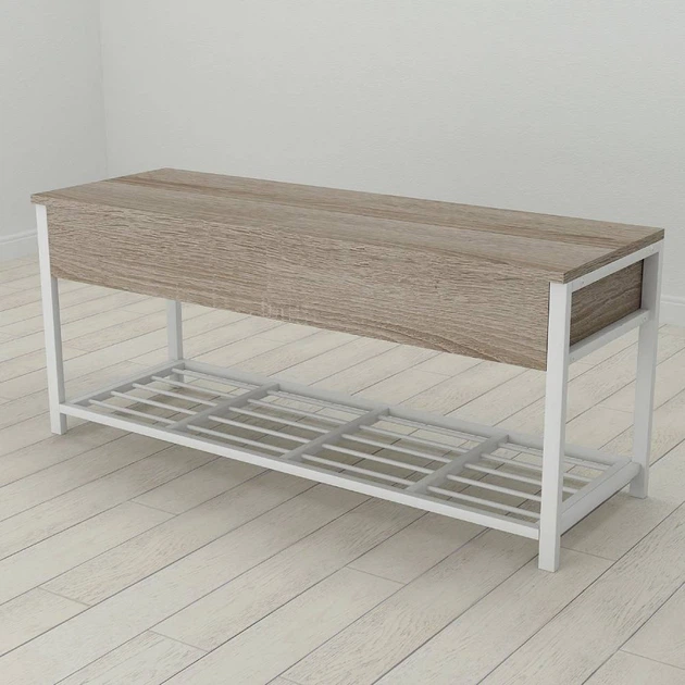 Банкетка з ящиком Ferrum-decor Дрейк 1 550x1000x400 метал Білий ДСП Сонома Трюфель 16 мм (FRD-103056)
