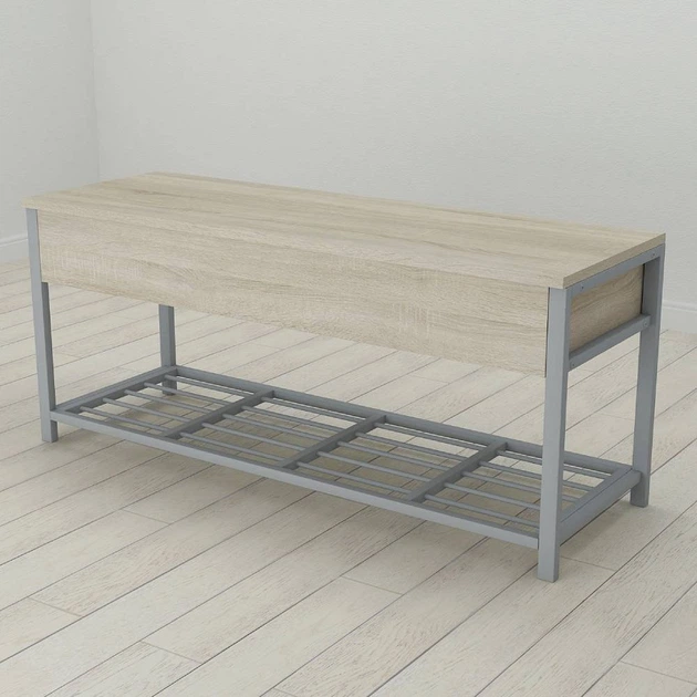 Банкетка з ящиком Ferrum-decor Дрейк 1 550x1000x400 метал Сірий ДСП Сонома 16 мм (FRD-103062)