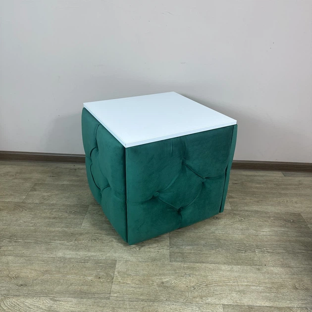 Пуф-трансформер 5 в 1 Mzavod Остін-1 зі столиком велюр смарагдовий/біла аляска (OSTIN-1-ST-VLR8-3-9003)