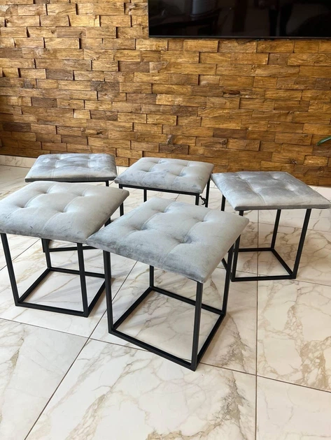 Пуф трансформер 5в1 з п'яти стільчиків із темно-сірої рогожки категорії люкс + ПОДАРУНОК Інтер'єрна подушка (2108)