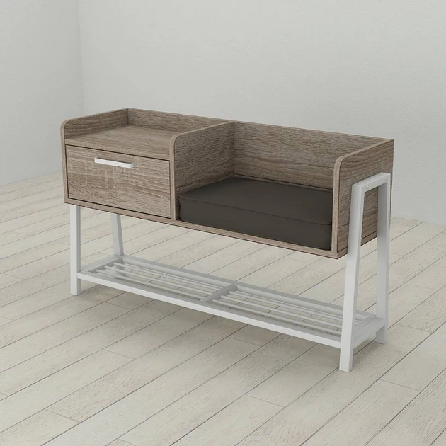 Банкетка із тумбочкою Ferrum-decor Бланка 540x1000x320 метал Білий ДСП Сонома Трюфель 16 мм (FRD-103035)