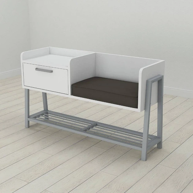 Банкетка із тумбочкою Ferrum-decor Бланка 540x1000x320 метал Сірий ДСП Біле 16 мм (FRD-103038)