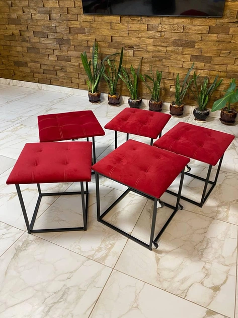 Пуф трансформер 5в1 з п'яти стільчиків з червоного велюру люкс + ПОДАРУНОК Інтер'єрна подушка (2108)
