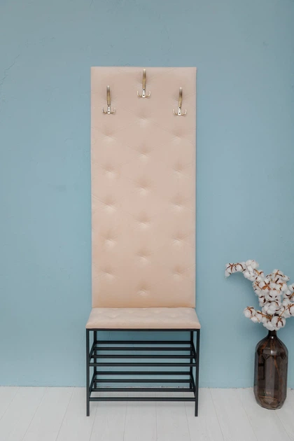 Банкетка для взуття 60*32*52 см та вішалка 140*60 см з велюру колір бежевий, полиця для взуття та вішалка