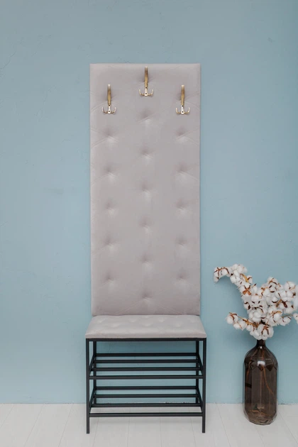 Банкетка для взуття 60*32*52 см та вішалка 140*60 см з велюру колір світло-сірий, полиця для взуття та вішалка