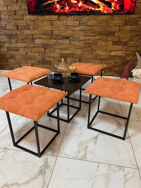 Пуф трансформер 5в1 із мякої оранжевої рогожки люкс зі столиком венге + ПОДАРУНОК Інтер'єрна подушка (2108)