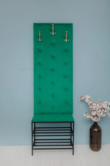 Банкетка для взуття 60*32*52 см та вішалка 140*60 см з велюру колір смарагдовий, полиця для взуття та вішалка
