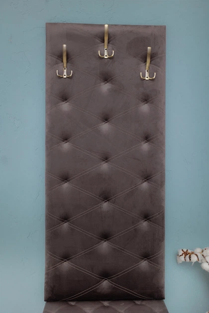 Банкетка для взуття 60*32*52 см та вішалка 140*60 см з велюру колір темно-сірий, полиця для взуття та вішалка