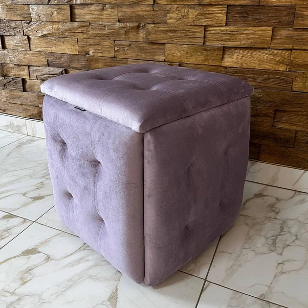Пуф трансформер 5в1 з п'яти стільців з велюру топ в бузковому кольорі на чорному металевому каркасі