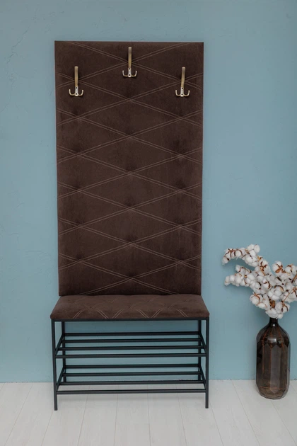 Банкетка для взуття 60*32*52 см та вішалка 140*60 см з велюру колір темно-коричневий, полиця для взуття та вішалка