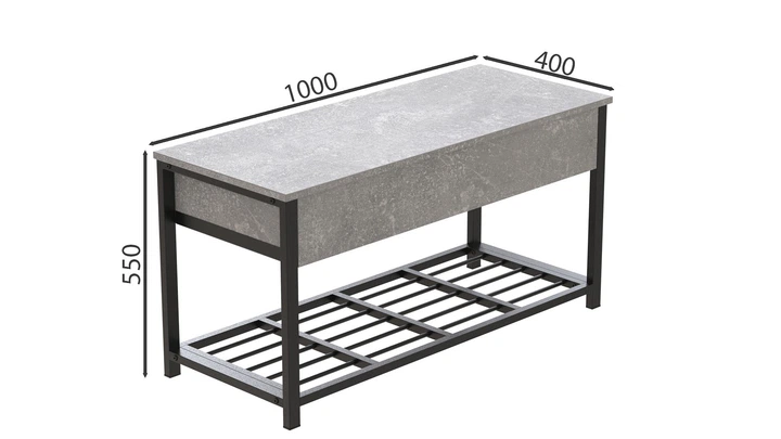 Банкетка з ящиком Ferrum-decor Дрейк 2 550x1200x400 метал Сірий ДСП Бетон 16 мм (DRE0042)