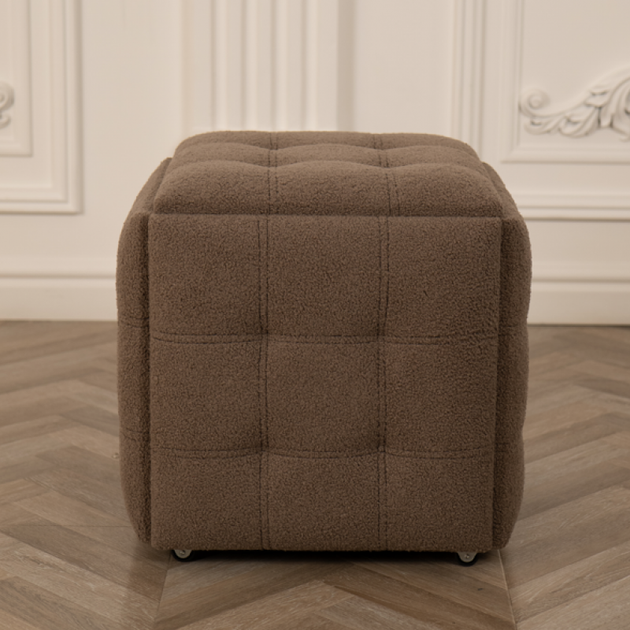 Пуф трансформер 5 в 1 тедді коричневий, розкладний пуф на колесах, смарт куб п'ять сидінь, стільці 5 в 1