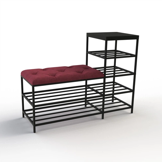 Банкетка з полицею для взуття каретна стяжка Mzavod 100 см, Чорний каркас, Червона тканина, Чорний