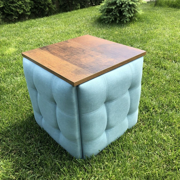Пуф трансформер 5в1 із ніжно блакитного велюру з коричневим столиком + ПОДАРУНОК Інтер'єрна подушка (2108)