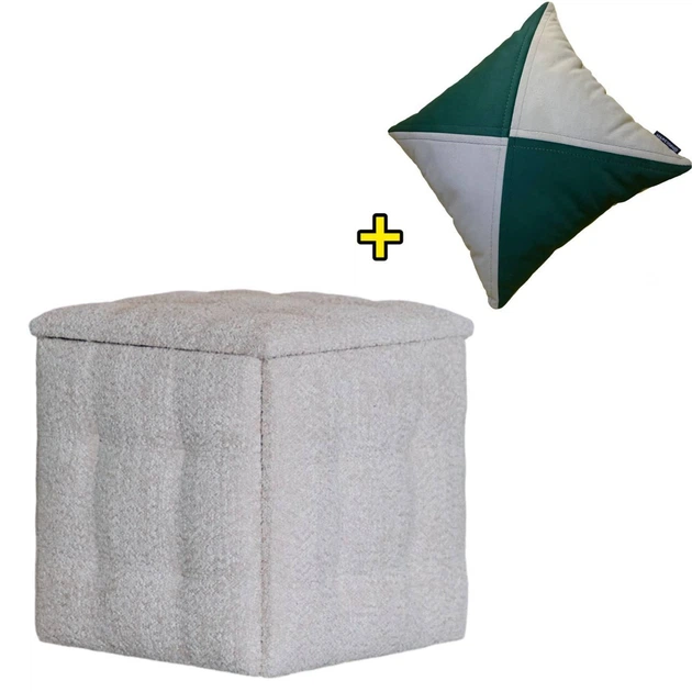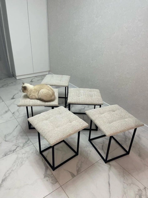 Пуф трансформер 5в1 з п'яти стільчиків з ніжно молочного велюру альпака + ПОДАРУНОК Інтер'єрна подушка (2108)