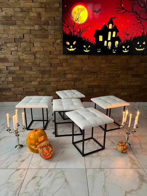 Пуф трансформер 5в1 з п'яти стільчиків з білого велюру альпака + ПОДАРУНОК Інтер'єрна подушка (2108)