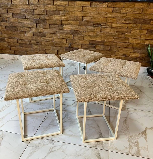 Пуф трансформер 5в1 з п'яти стільчиків з ніжно бежевого велюру лама + ПОДАРУНОК Інтер'єрна подушка (2108)