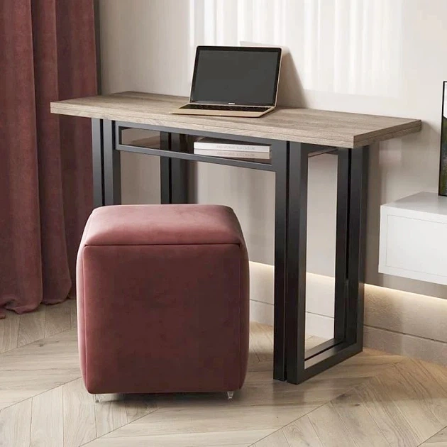 Пуф Vi-Tall 5 в 1 розкладний, стандарт, бордо, велюр, каркас метал чорний 50 х 50 х 50 см