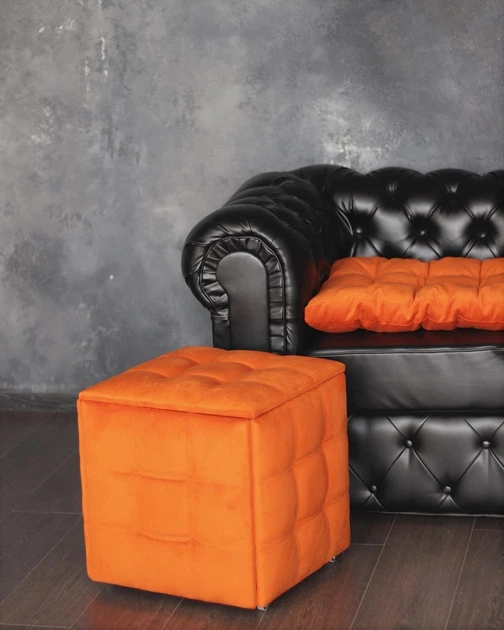 Пуф Vi-Tall 5 в 1 розкладний, релакс, померанчевий, велюр, каркас метал чорний 50 х 50 х 50 см