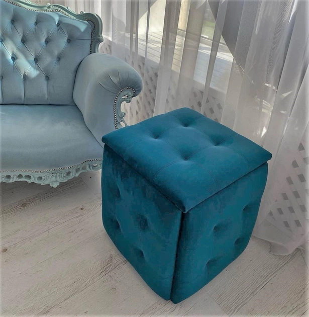 Пуф Vi-Tall 5 в 1 розкладний, релакс, блакитний, велюр, каркас метал чорний 50 х 50 х 50 см