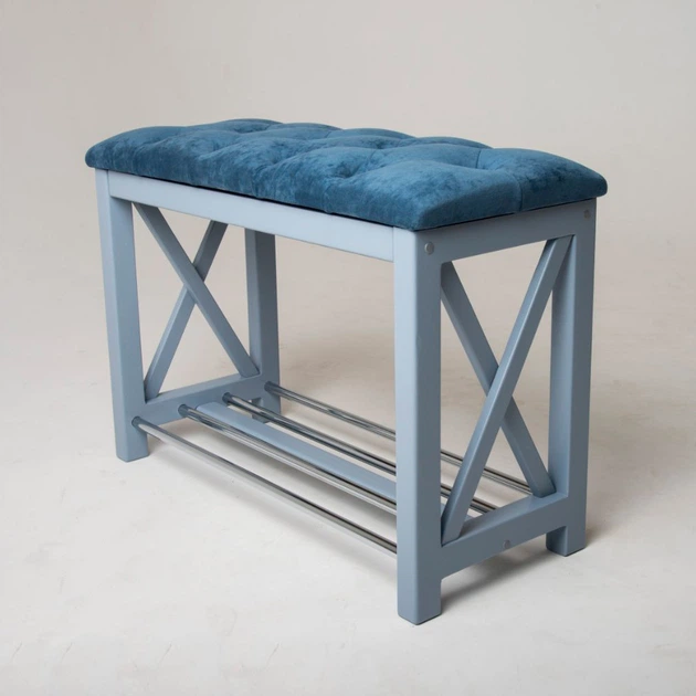 Банкетка з натурального дерева HouseWood сіро-бірюзова з поличкою 70х30х45см