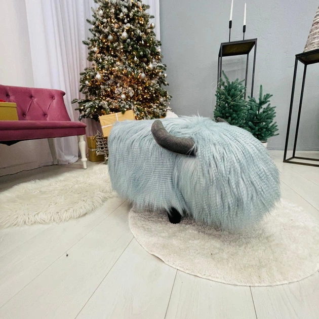 Інтер'єрний пуф дизайнерська банкетка бичок довговолосий блакитний