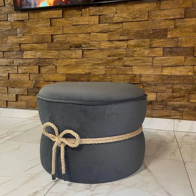 Пуф VICO з лляним тросом з сірого велюру люкс d64 см h44см
