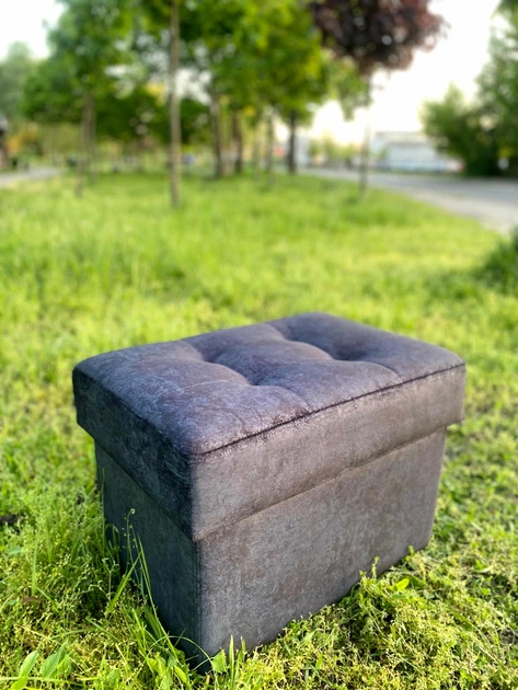Банкетка-консоль з двома висувними ящиками Mzavod 80 см, Чорний каркас, Сіра тканина, Риголіто темний
