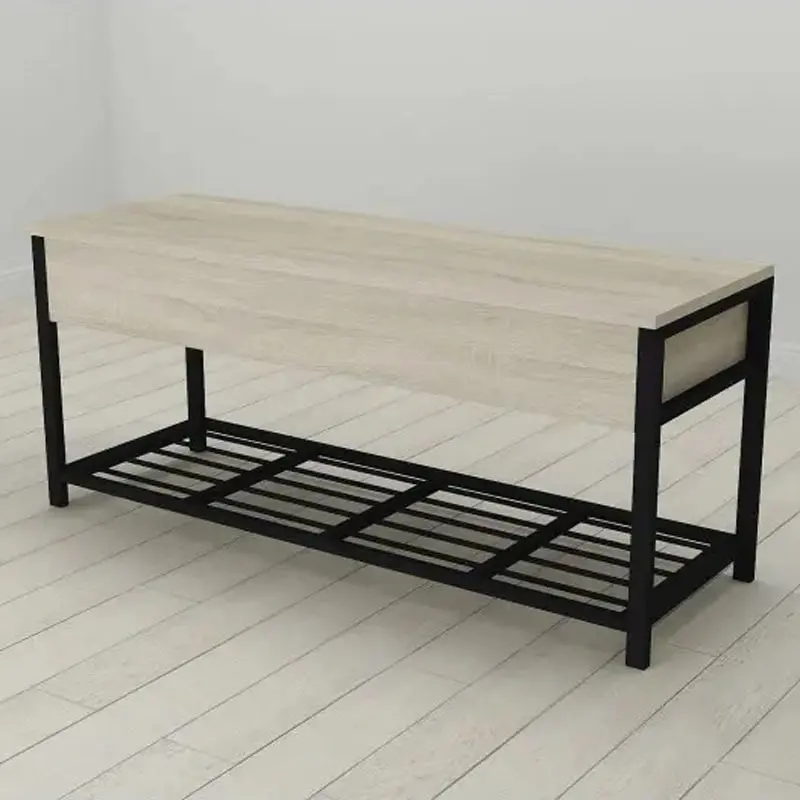 Банкетка із ящиком Ferrum-decor Дрейк 2 550x1200x400 метал Чорний ДСП Сонома 16 мм (FRD-103069)