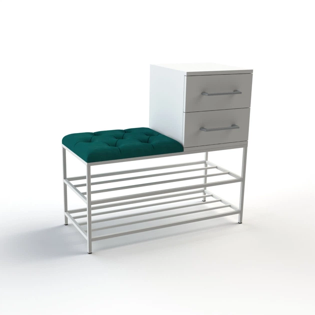 Банкетка-консоль з двома висувними ящиками Mzavod 80 см, Білий каркас, Бірюзова тканина, Біла Аляска