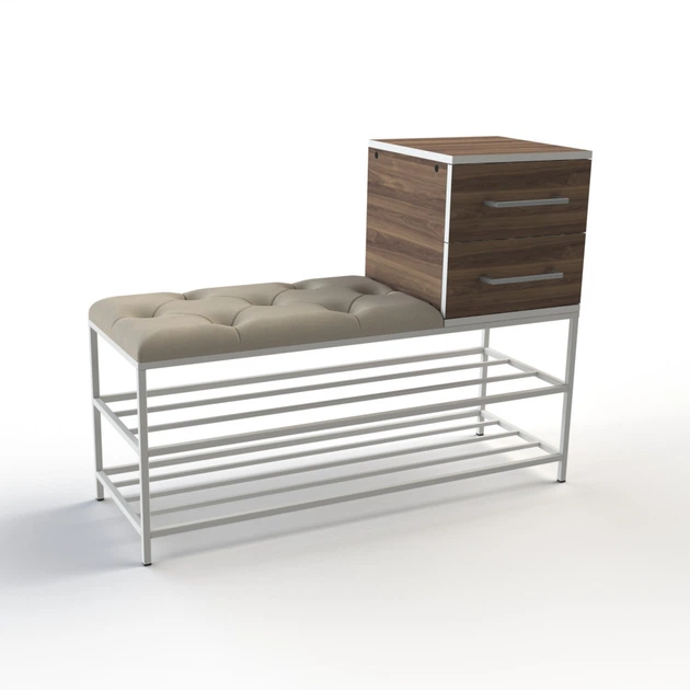 Банкетка-консоль з двома висувними ящиками Mzavod 100 см, Білий каркас, Бежева тканина, Горіх каліфорнійський